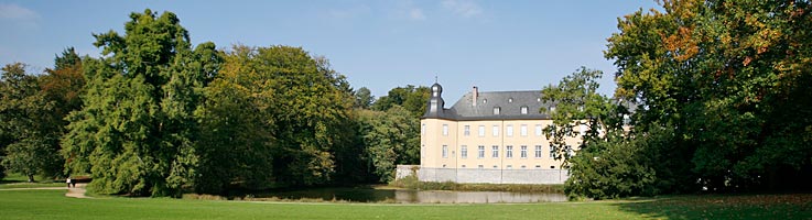 Auf dem Dycker Feld, einer ehemals landwirtschaflich genutzten Fläche, befinden sich seit der Landesgartenschau 2002 die Neuen Gärten von Schloss Dyck. Langgestreckte Zonen von China-Schilf (Mischantus) dominieren das Areal und wechseln sich mit Rasenflächen ab, dazwischen sind 22 Themengärten von ca. 650 qm zu entdecken (siehe vergrößerte Karte unten).
